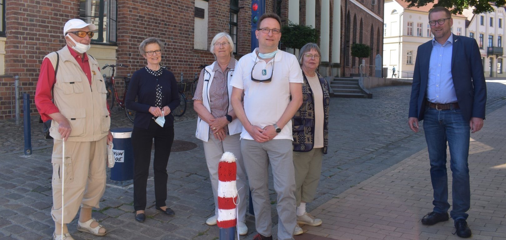Soziales Pollermützen für mehr Sicherheit auf Gehwegen